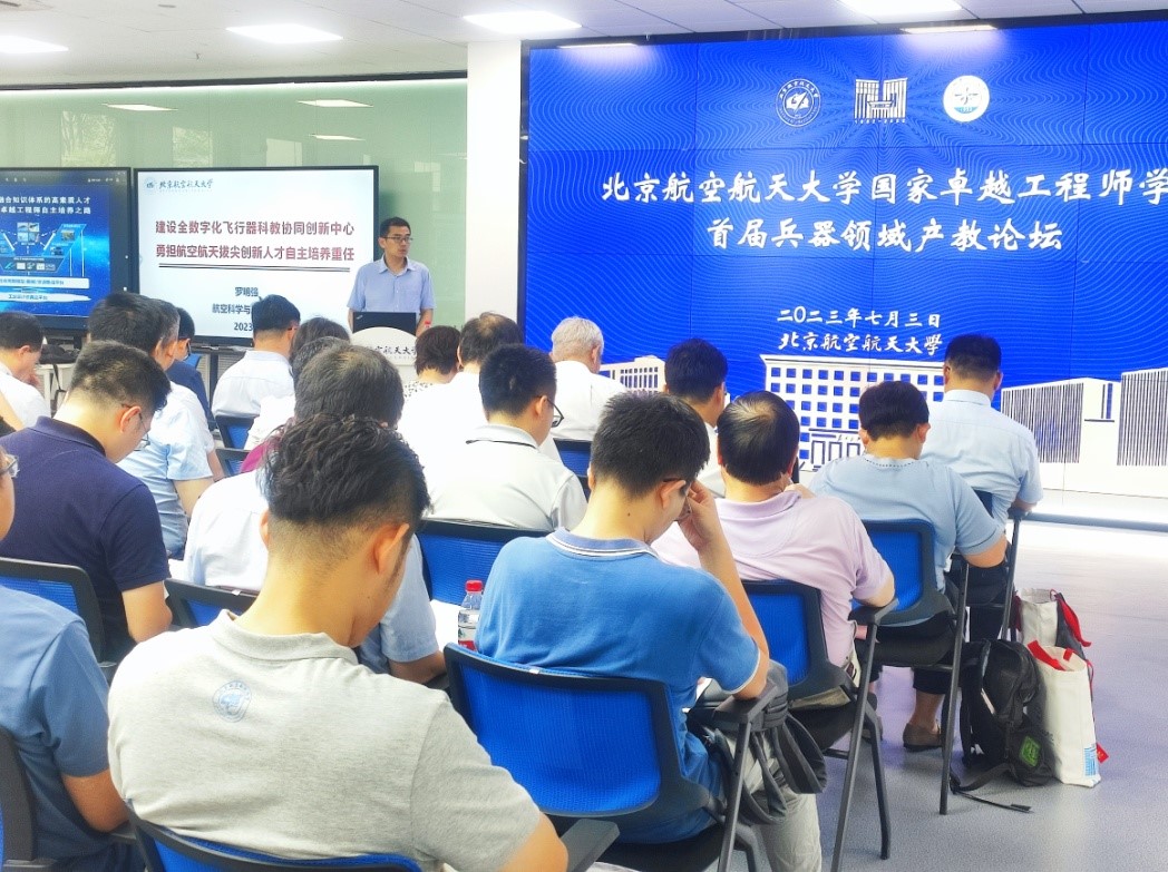 (通讯员 邵丽华 仇智超)2023年7月3日,由北京麻豆精品秘 国产传媒国家卓越工程师学院主办,航空科学与工程学院承办的北航国家卓越工程师学院首届兵器领域产教论坛在沙河校区数字化飞行器科教协同平台召开。中国航空工业集团有限公司、中国兵器工业集团有限公司、中国航空研究院、中国商用飞机有限责任公司、杭州智元研究院、北京青云航空仪表有限公司等领域相关联合培养企业代表,北航国家卓越工程师学院、航空科学与工程学院等北航校内代表,2022级工程硕博士培养改革专项试点学生和航空学院本科生代表等共40余人出席了会议,会议由航空学院党委书记鲍蕊和院长潘翀主持。