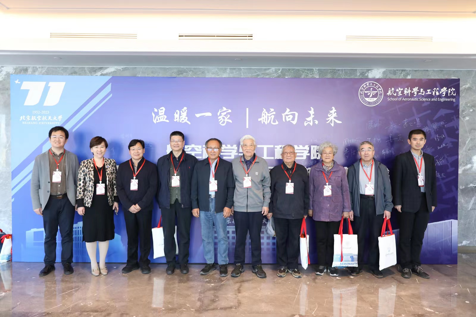 最后,由学院老院长袁修干教授代表发言。他深情回顾了从1952年入校到现在与母校、母院的点点滴滴,他表示希望所有的北航人不忘初心、勇毅前行,为国家富强、民族振兴、社会进步砥砺奋斗。