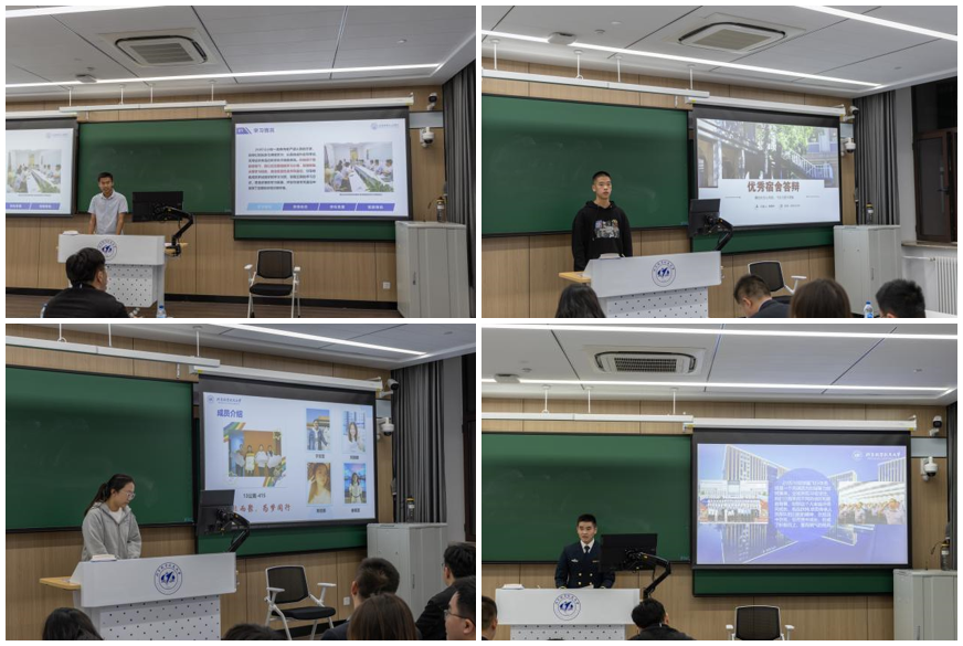 首先进行的是优秀宿舍答辩,双学籍飞行学员黄辉宇,以“搏击长空心向党,飞行万里不迷航”为题,展示了学院路7公寓101四位飞行学员的风采,他们严明的纪律、干净整洁的宿舍和优异的成绩给大家留下了深刻的印象。