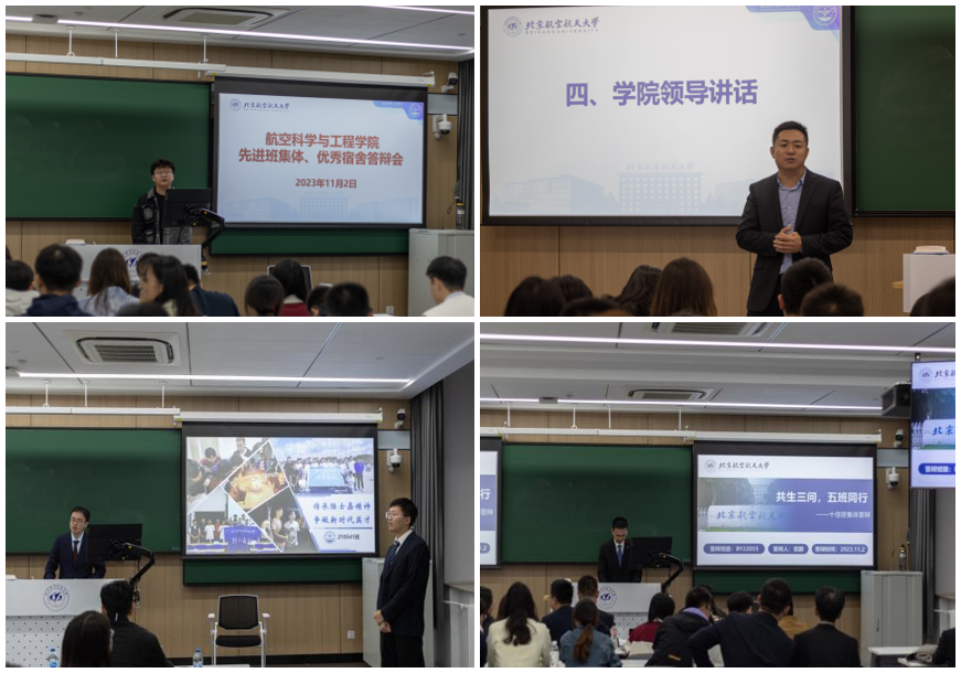 2023年11月2日,航空科学与工程学院2022-2023学年先进班集体、优秀宿舍答辩会在学院路校区主南201顺利举行。学院党委副书记梁伟涛、分团委书记钟国、研究生办公室主任杨锐、专职辅导员乔梁以及本研半脱产辅导员出席活动并担任评委。来自航空学院本研十余个班级和宿舍参加本次答辩,学院本研低年级班级学生骨干现场观摩学习。