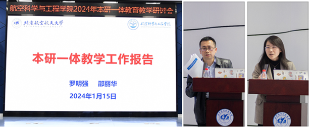 航空学院副院长罗明强、邵丽华做本研一体教学工作报告