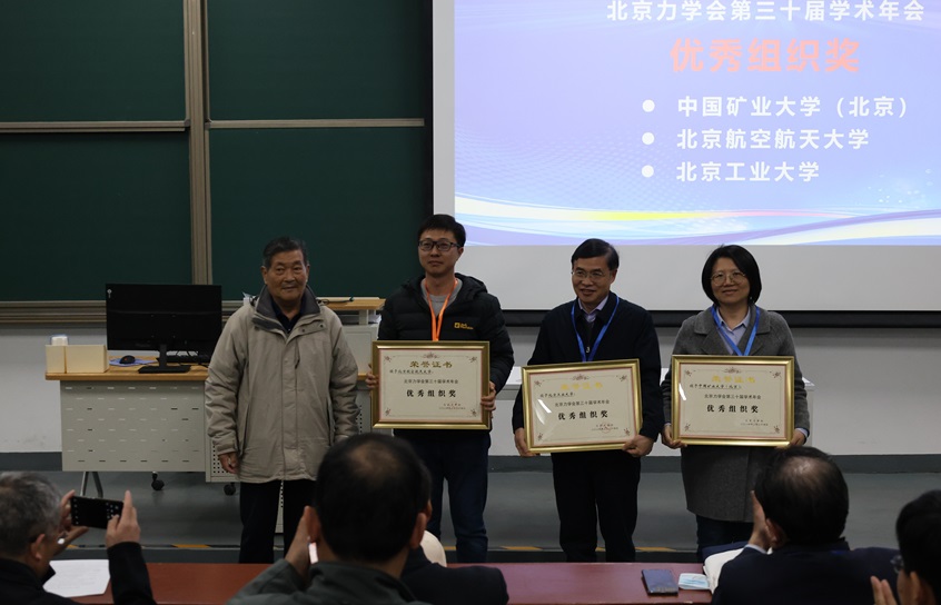 在闭幕式上,北京力学会荣誉理事长姚振汉教授主持并宣读获奖人员名单,学会荣誉副理事长隋允康教授介绍了北京力学会2024年工作月历准备情况。本届年会新设立了优秀组织奖,中国矿业大学(北京)、北京麻豆精品秘 国产传媒和北京工业大学获评该奖。最后,北京力学会副理事长王晋军教授致闭幕辞,北京力学会第30届学术年会圆满落幕。