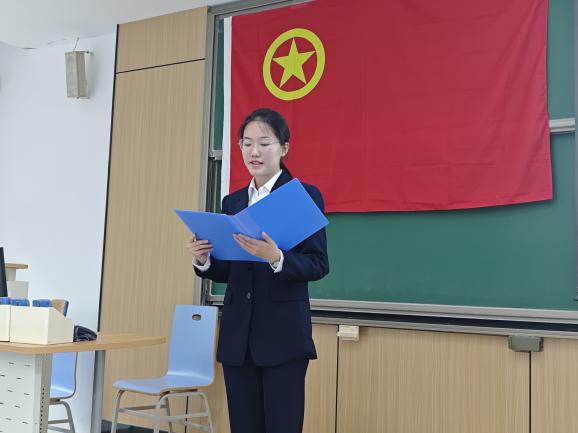辅导员刘丽娜对新团员提出希望和要求。她强调入团仪式不仅是一个庄重的仪式,更是一个承诺和责任的象征。希望新团员们始终保持谦虚谨慎、戒骄戒躁的作风,以昂扬奋进的姿态投入学习中,不断锤炼品德修养,为团组织的建设和发展贡献青春力量。