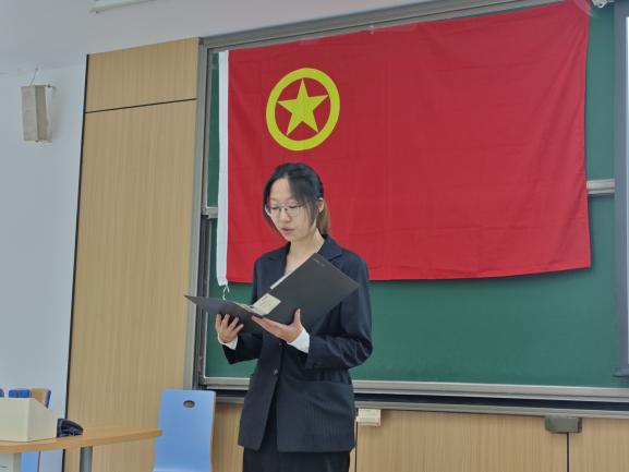 作为新团员代表,薛天宇同学在发言中表示,在团组织的培养与支持下,她将积极学习理论知识,严格要求自己,树立崇高理想,做有理想、敢担当、能吃苦、肯奋斗的新时代好青年,让青春在全面建设社会主义现代化国家的火热实践中绽放绚丽之花。作为一名有将近六年团龄的老团员,黄紫琦同学在发言时号召新团员们要时刻牢记自己是一名共青团员,始终按照团的章程严格要求自己,时刻以苛刻标准规范自己的言行,努力提高自己的政治意识,勤奋学习,锐意进取,做优秀的中国共产党助手和后备军。