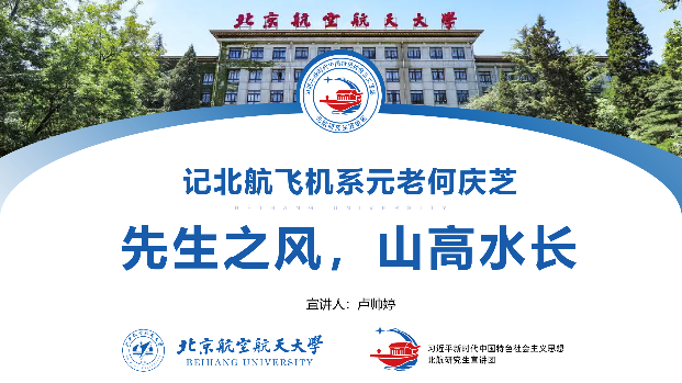 最后,北航研究生宣讲团成员卢帅婷为新发展团员带来两节团课《核心技术自立自强 航空强国奋勇攀登》和《先生之风,山高水长——记北航飞机系元老何庆芝》。