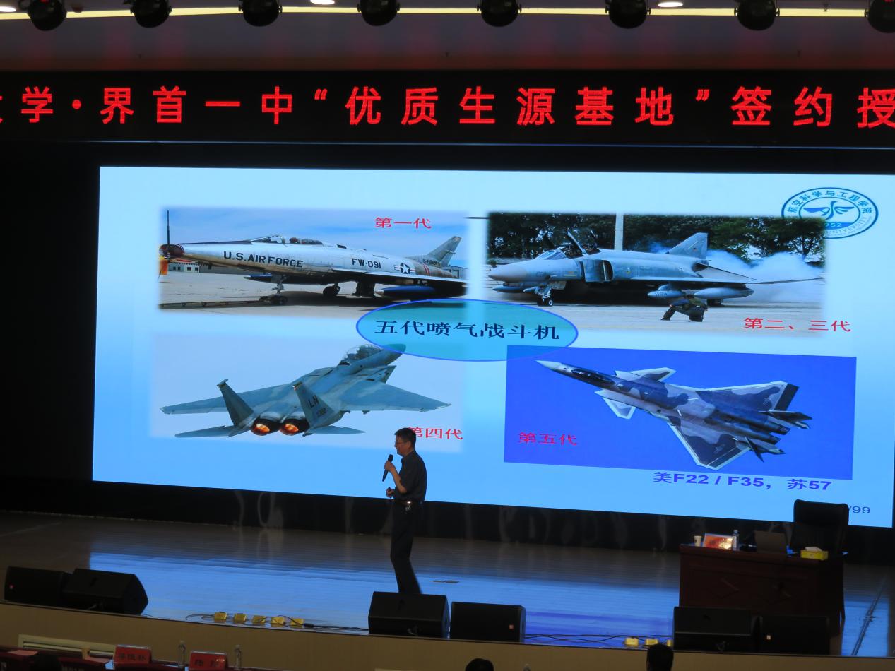 仪式结束后,杨超教授为现场师生带来了一场精彩的航空航天专题讲座。他详细介绍了航空航天领域的最新发展动态,从宇宙探索到卫星技术,再到航空器的设计与制造,每一个环节都充满了科学与技术的魅力。杨超教授还分享了北航在航空航天领域取得的重大科研成果和突破,激发了在场师生对航空航天事业的浓厚兴趣。他鼓励同学们要敢于追梦,勇于探索,为我国航空航天事业的发展贡献自己的力量。