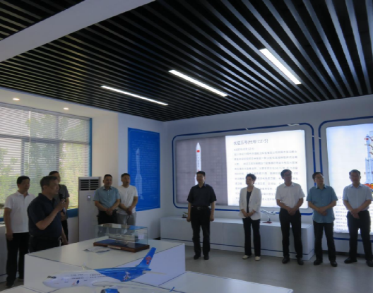 随后,与会人员实地参观了科普馆,并听取了界首一中原副校长任朝斌对于科普馆建设过程中杰出校友所作贡献的讲解。科普馆内容丰富,展示了航空航天领域的部分最新科技成果和前沿知识,为中学生提供了直观、生动的科普教育平台。