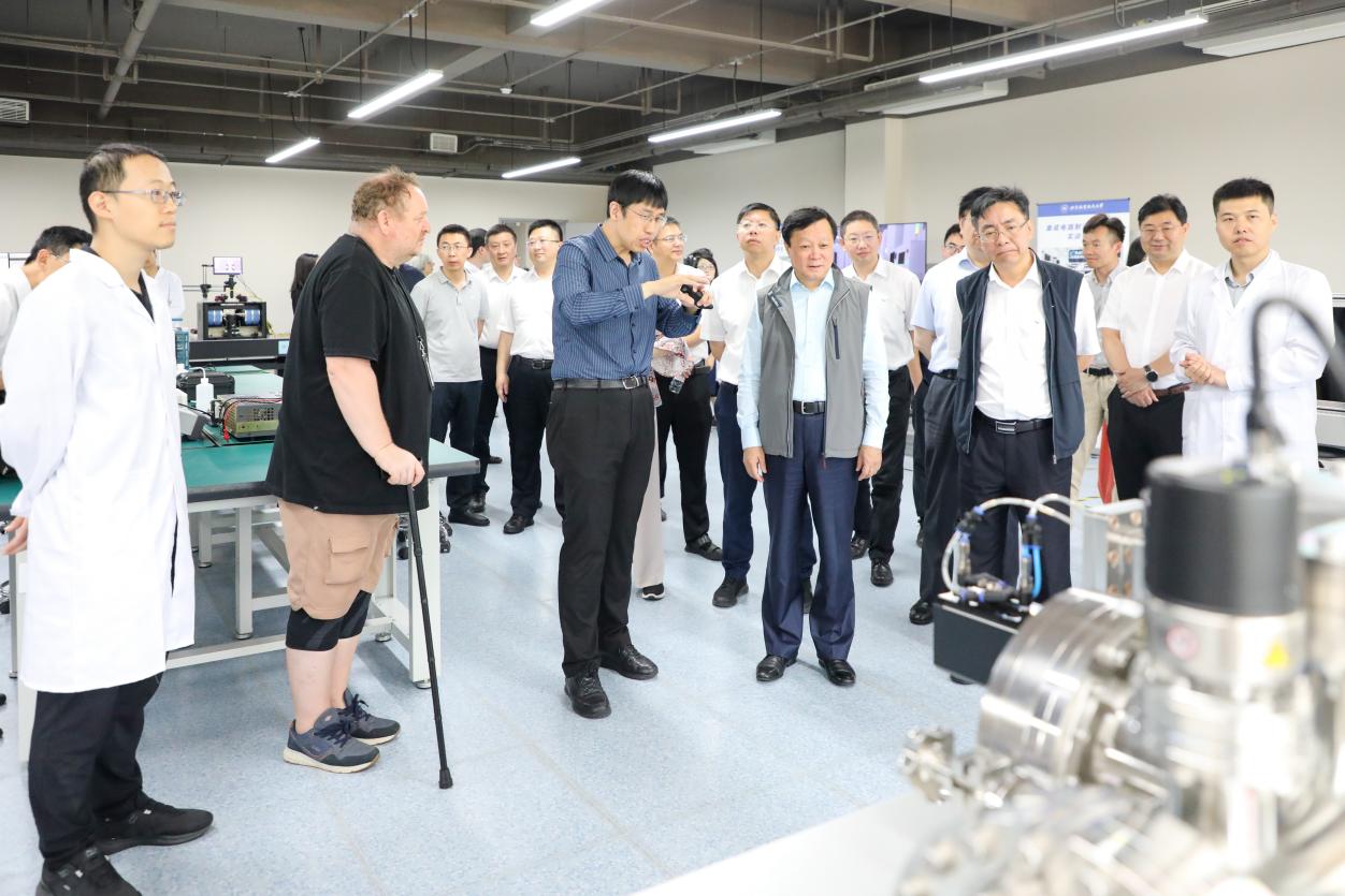 次日,中国商飞公司党委书记、董事长贺东风,党委常委、副总经理沈波一行受邀参观杭州国际校园会议中心二楼沙盘、图书馆、科研一号楼(自旋芯片实验室、全疆域飞行器安全防护实验室、航空环境气候研究实验室、航空排放适航检测实验室、航空大数据智能服务实验室、中法达索卓越教育中心)以及科研二号楼(天目山实验室)。北航副校长张海兰、赵巍胜等陪同参观,各实验室负责人为来宾详细介绍了校园总体图景、实验室发展与现有教学实验装置等。最后,双方合影留念,定格这一宝贵的交流时刻,也预示着未来双方在科研合作、人才培养等方面将拥有更加广阔的合作空间与美好前景。