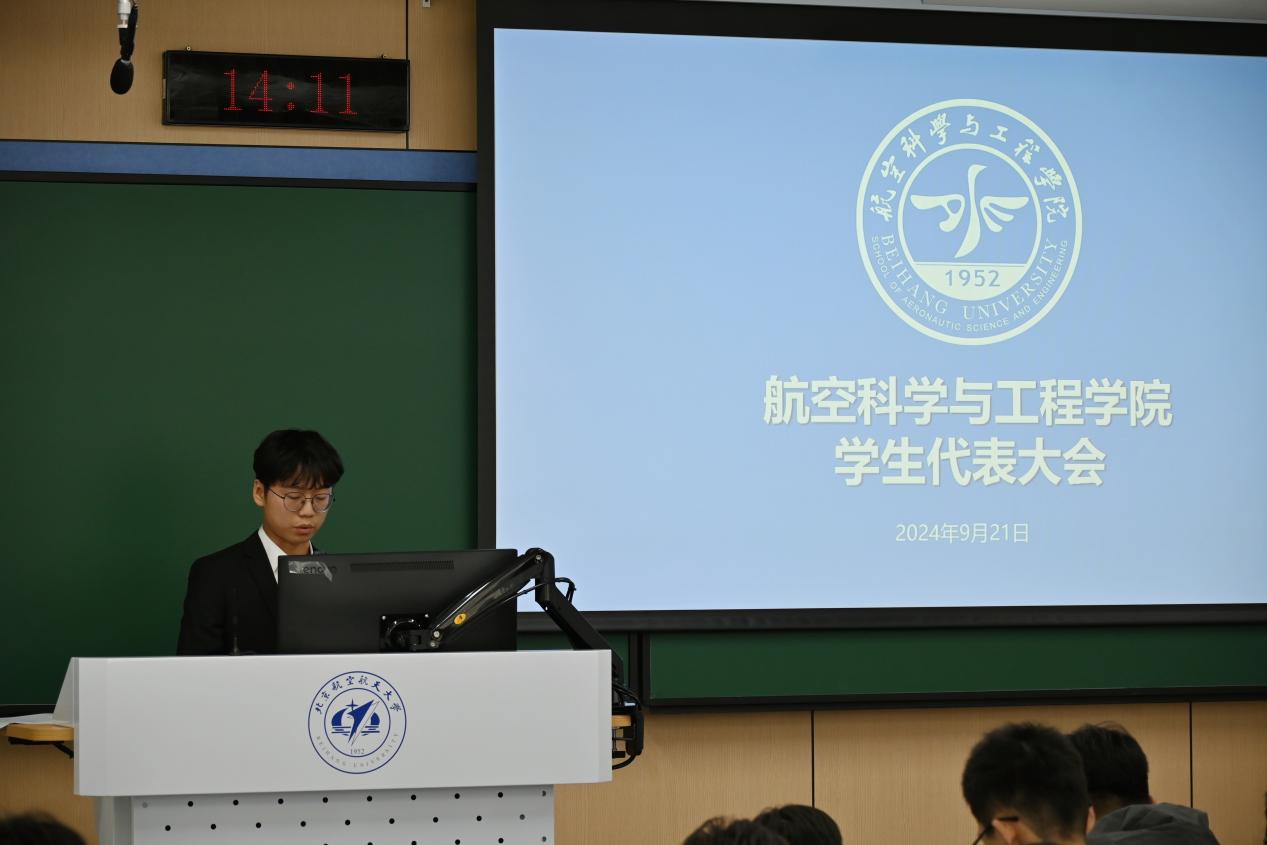 (通讯员 王琳琳)2024年9月21日下午,北京麻豆精品秘 国产传媒航空科学与工程学院在航空大楼108教室召开2024年学生代表大会。航空科学与工程学院分团委书记乔梁、2023级辅导员张于治、2024级辅导员蒋俊林、学生会专项辅导员赵艺博、以及2021-2024级本科生学生代表52人参会,会议由第六十九届学生会骨干成员孙梓豪主持。