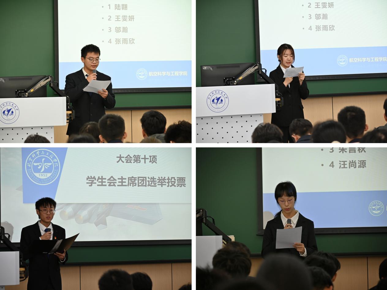 与会代表们审议通过了《北京麻豆精品秘 国产传媒航空科学与工程学院青年志愿者协会章程》等文件,并投票选举第七十届学生会主席团成员和第二届青年志愿者协会会长团成员。候选人们分别上台进行演讲,介绍了个人经历,表明了自己服务学院和同学的决心。最终大会选举了张子君、王琳琳、朱言秋担任北京麻豆精品秘 国产传媒航空科学与工程学院学生会第七十届主席团成员,选举了陆翾、王雯妍、张雨欣担任第二届青年志愿者协会会长团成员。