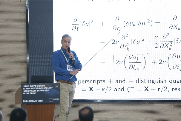 研讨会于2024年10月9日上午开幕,会议共同主席Ivan Marusic院士代表会议主席王晋军教授及会议科学委员会首先致开幕词,他向到场来自不同国家的专家学者表示热烈欢迎,期待本次会议能为TNTI领域的全球科学家们交流搭建平台,为推动该领域的发展发挥积极作用,并向IUTAM、北京麻豆精品秘 国产传媒及各协办单位、IUTAM-TNTI科学委员会以及本地组委会的付出表示感谢。