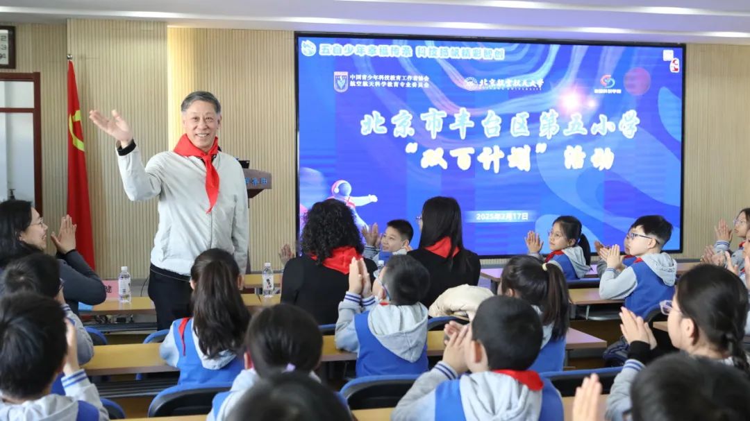 其中,中国青少年科技教育工作者协会航空航天专委会主任、北航航空学院院长潘翀教授在北京第五实验学校做题为《从师法自然到超越自然:科技如何创造飞行》的讲座。潘翀教授通过展示鸟类飞行、风筝、早期滑翔机以及现代喷气式飞机的发展脉络,让学生们理解了科技在飞行领域的创新与突破。他还分享了未来飞行技术的发展趋势,如电动飞行、无人驾驶等,激发了学生们对未来空天科技的无限遐想。