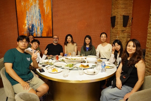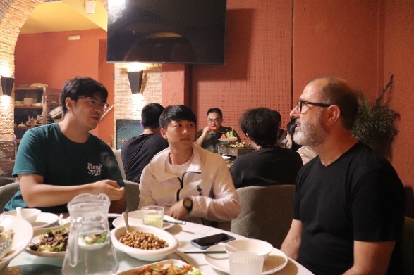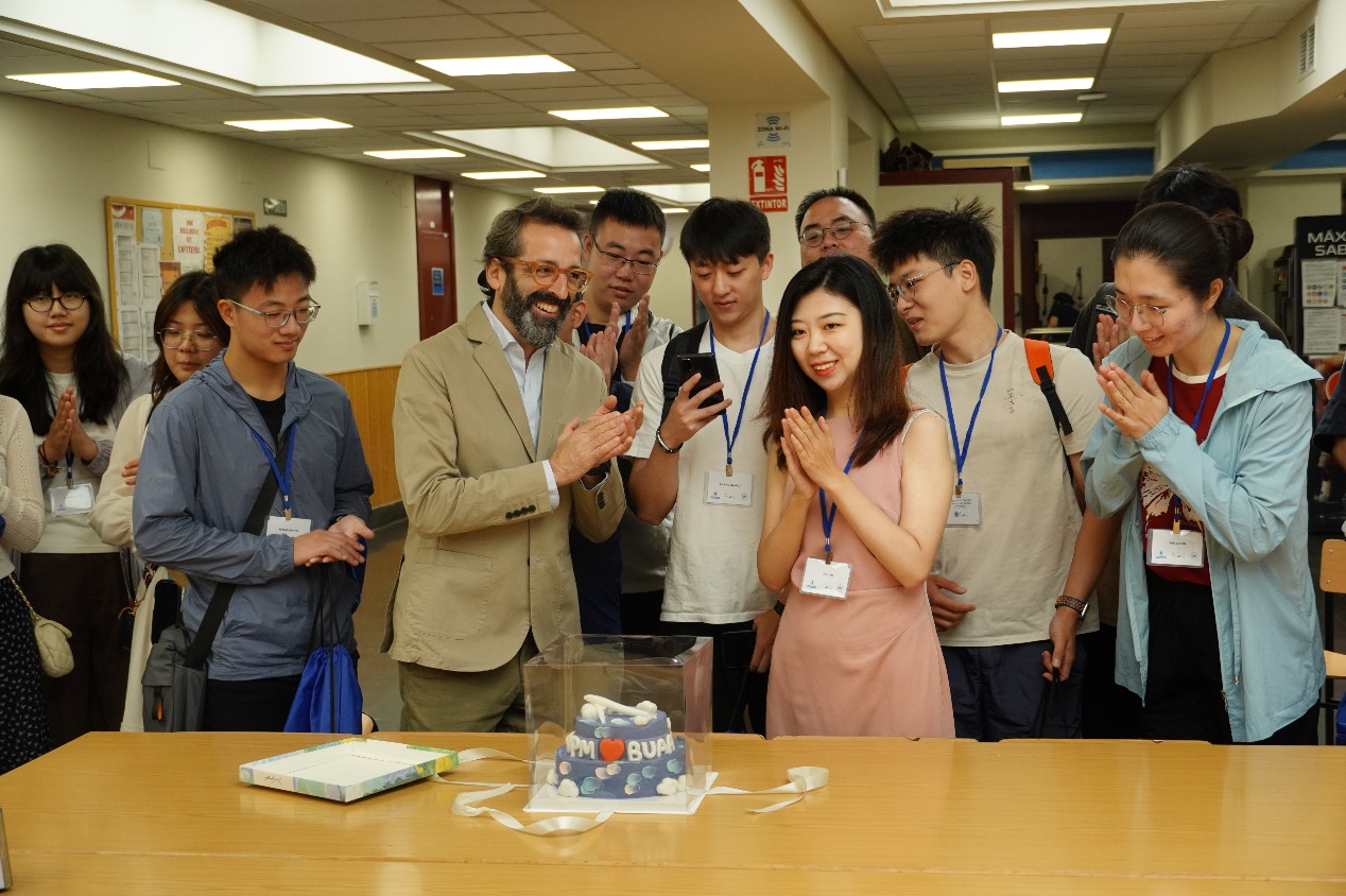 课程期间,马德里理工大学航空航天工程高等技术学院举行了欢迎午宴,Gustavo Alonso院长回顾了马德里理工大学与北京麻豆精品秘 国产传媒的深厚友谊,并表示,期待此次暑期学期成为增进双方合作和知识共享的桥梁。双方带队老师共同给大家分享了代表双方友谊与合作的蛋糕。