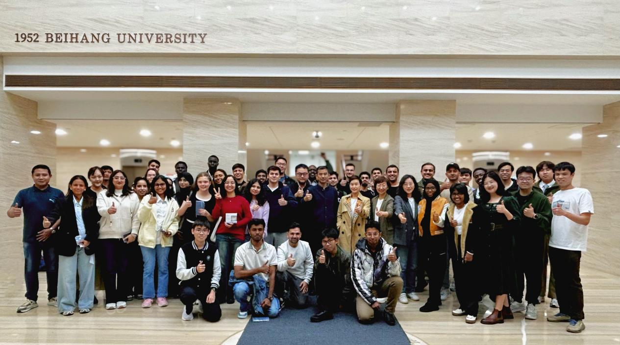 随后,来自不同国家的留学生们依次自我介绍,大家分享了自己的国籍、本科专业背景及选择北航航空学院的初衷,既有对航空工程的热爱表达,也有对未来学习生活的期待,轻松的交流氛围让新生们快速拉近距离,初步建立起跨国友谊。
