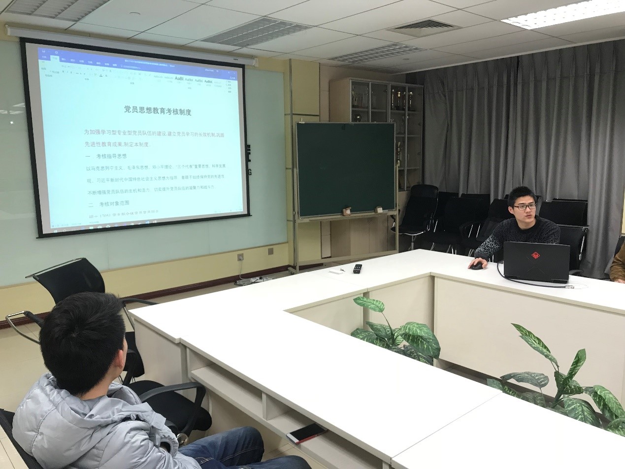 支部书记付子豪同志向支部全体党员介绍了关于本学期支部建设“制度月”的相关精神指示,结合支部特点提出了建立党员学习的考勤和考核制度。