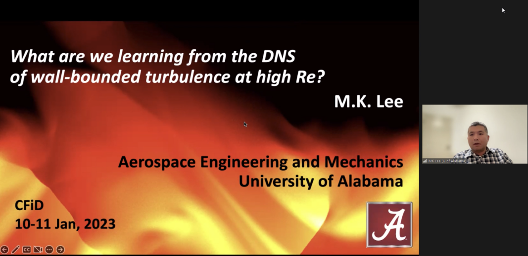 美国阿拉巴马大学Myoungkyu Lee助理教授以《What are we learning from the DNS of wall-bounded turbulence at high Reynolds numbers?》为主题,针对高雷诺数下的壁湍流DNS研究进展进行了报告。