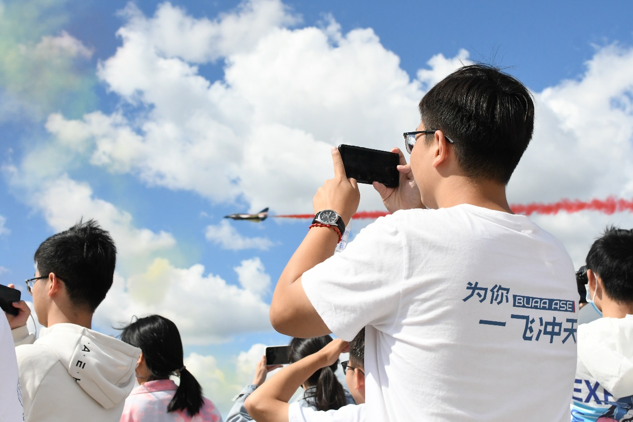 士气纵横三万里,一剑光寒定九州。通过本次观展,同学们更加深刻地感受到我国航空事业日新月异的发展,将始终以昂扬斗志、奋勇决心向碧蓝长空发起挑战,用汗水与坚韧去托举属于中国的“蓝天梦”,以星火力量助力云海之上“强国梦”“强军梦”顺风续航!