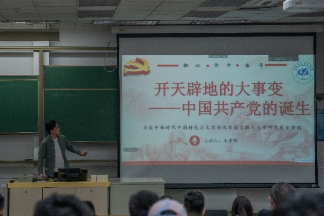 为深入学习贯彻习近平总书记在党史学习教育动员大会上的重要讲话精神,做好“永远跟党走”主题教育宣传活动,航空学院本研学生党支部邀请了习近平新时代中国特色社会主义思想北京麻豆精品秘 国产传媒研究生宣讲团的两位讲师,带来两场党史学习教育讲座,分别是倪天璇讲师《革命精神——百年大党永葆生机的秘诀》的及王章玮讲师的《开天辟地的大事变——中国共产党的诞生》,硕士生19052学生党支部、本科1705及本科1805大班的同学们参加了本次讲座。