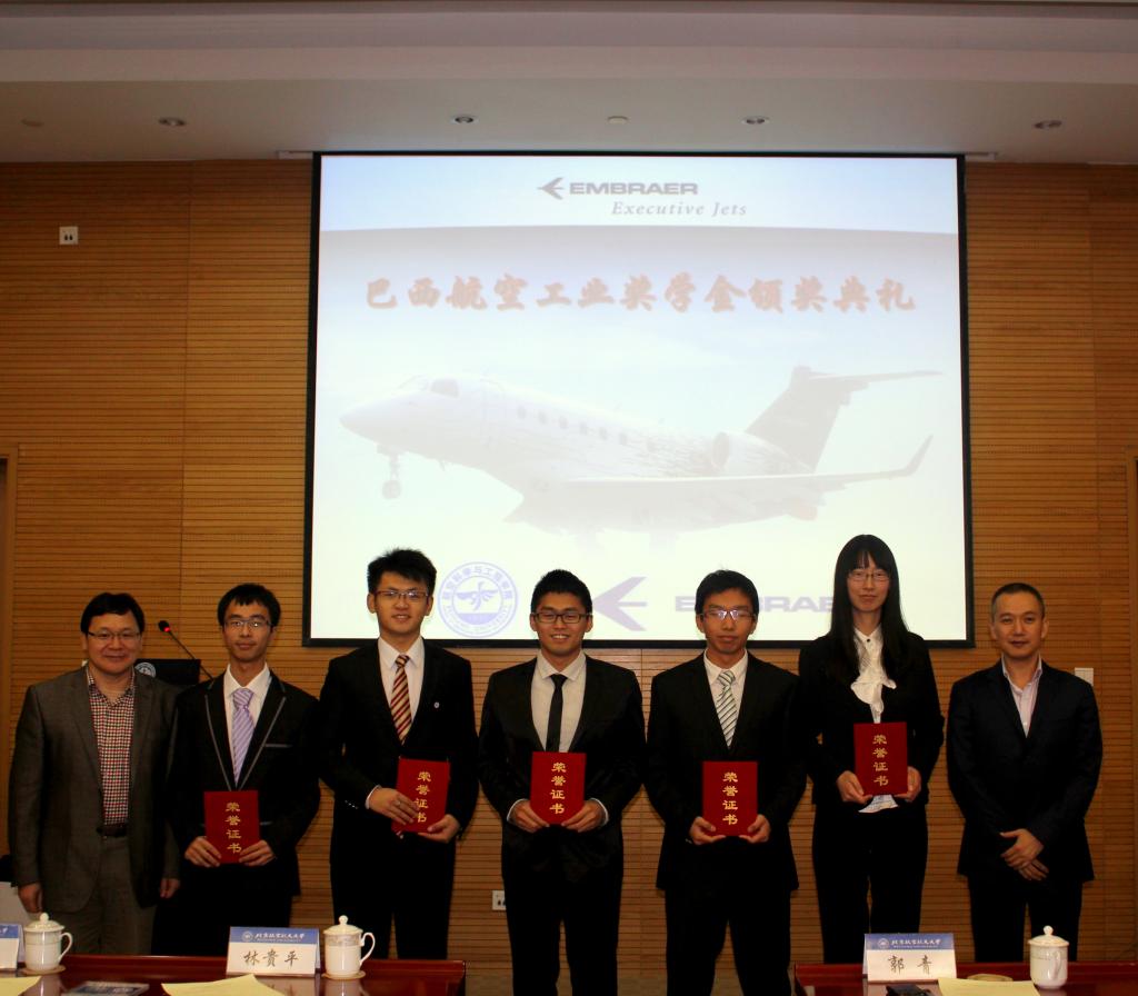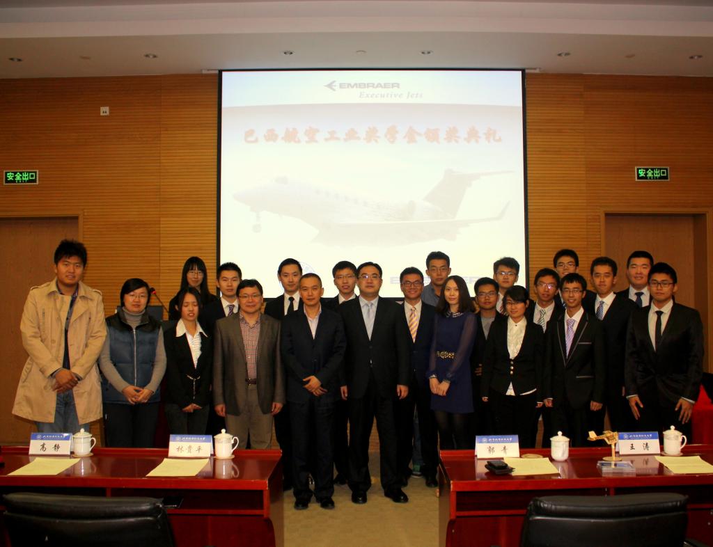 此次巴西航空工业公司奖学金共颁发一等奖5名、二等奖10名。获奖学生中,有1人获得挑战杯特等奖,8人获得全国航模锦标赛个人或者团体冠军,其余获奖者在“冯如杯 ”等科技竞赛中也有突出表现 。