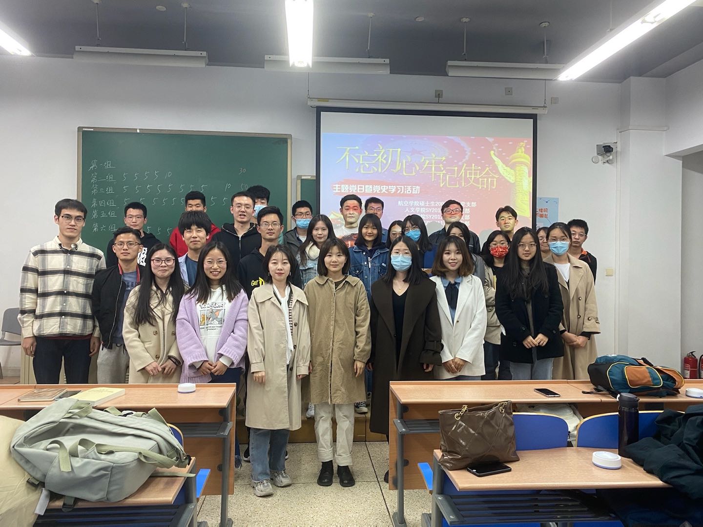 4月16日晚,北航航空学院硕士生20054学生党支部、人文社会科学学院SY2011第一党支部、SY2011第二党支部、ZY2011党支部联合开展了“学党史、励初心”系列主题学习日活动。此次学习日活动主要分为宣讲和知识竞赛两个部分:来自北航研究生宣讲团的武佳奇讲师和北航民法典宣讲团的齐笑讲师分别做主题报告,在集体听取了宣讲报告后,支部成员开展了激烈且具趣味性的党史知识竞赛。活动由航空学院硕士生20054学生党支部书记强鑫主持。
