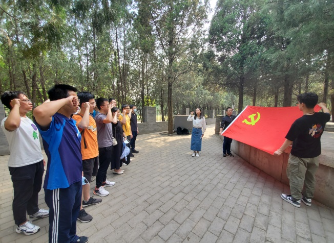 支部同志们首先来到了三一八烈士墓前。第一小组的张一飞同志向大家介绍了三一八惨案的背景与过程,带大家回忆了那段内忧外患的惨痛历史,支部成员集体缅怀三一八惨案中遇难先烈,在墓前重温入党誓词。第二小组的王通同志带领大家回顾了马克思主义在中国的传播历史:从“十月革命”为中国送来了马克思列宁主义,到革命先辈借刊物广泛传播、再到如今发展出中国特色社会主义理论体系。第三小组的杨小鹏同志以“为什么只有共产党才能救中国”为主题,回忆了中国共产党带领工农阶级消灭剥削、消灭暴力腐朽政权的历史,阐述全国一盘棋、团结一致守望相助的新时代图景,在党的坚强领导下,中华民族伟大复兴的中国梦正在稳步实现。