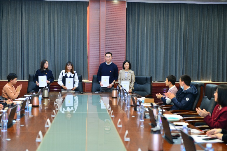 活动最后,由四院四部郭保东同志宣读共建协议,明确支部共建的指导思想、活动原则、共建内容与共建要求等内容。四院四部气动水动研究室党支部书记李艳丽、北航航空学院流体所教师党支部书记高振勋、博士生19051学生党支部书记汤艳霞、博士生19052学生党支部书记高妍共同签署了党支部“党建共建”结对协议书。