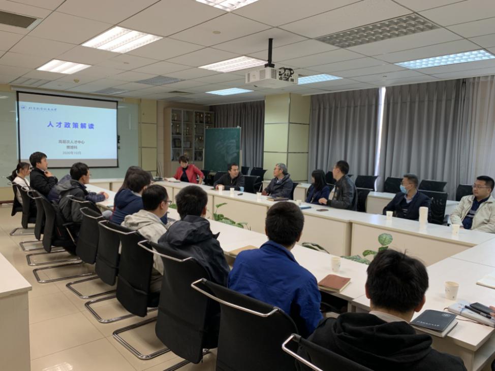 (通讯员 张勇波)10月21日,航空学院工会在新主楼C708组织召开了人才政策学习交流会,本次交流会邀请了人事处高层次人才中心副主任贾增科老师做专题报告。参加会议的有航空学院副院长蒋崇文、副院长陈玉丽,院工会主席高振勋以及部分青年教师。会议由高振勋主持。